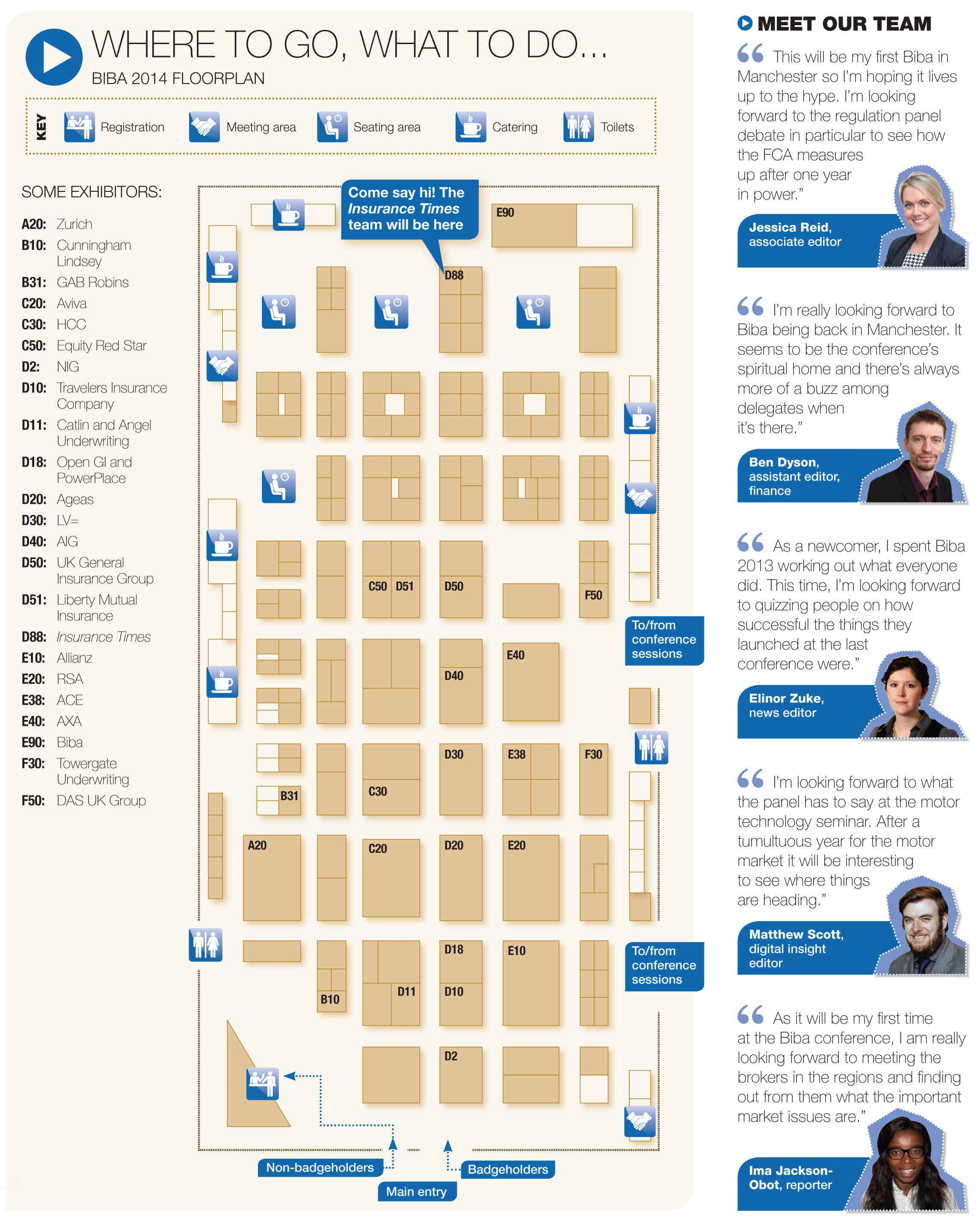 Insurance Times takes a look at what promises to be the highlights of the 2014 Biba conference, including a preview of the fringe sessions, a map of the main exhibitors and a guide on what to do outside the conference