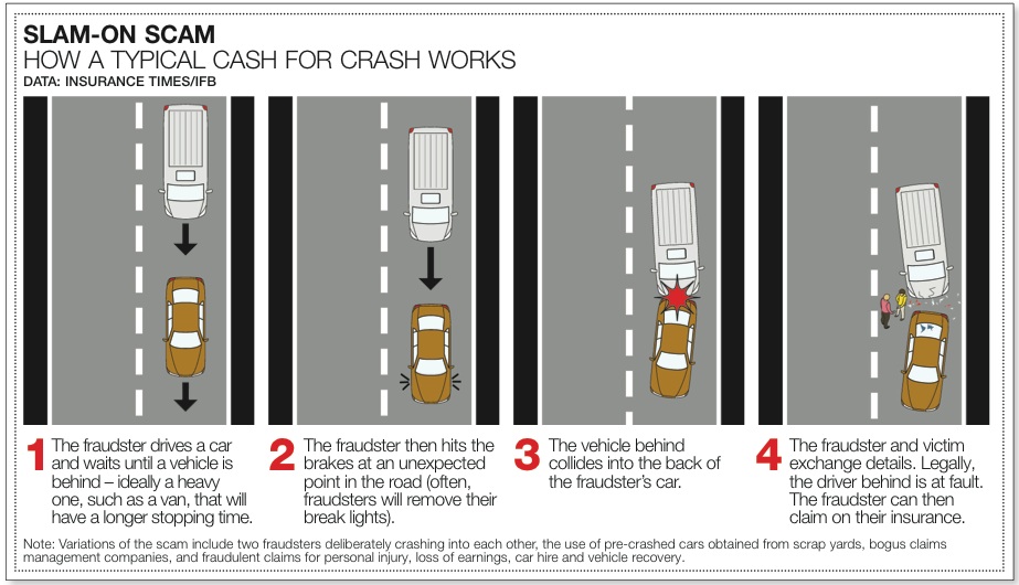 Cash for crash scams cost the insurance industry £392m per year. The scale of the problem, which was revealed in an Insurance Fraud Bureau (IFB) report last week, comes despite efforts to clamp down on it.